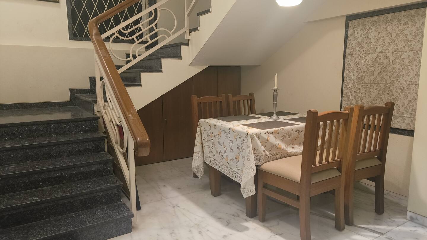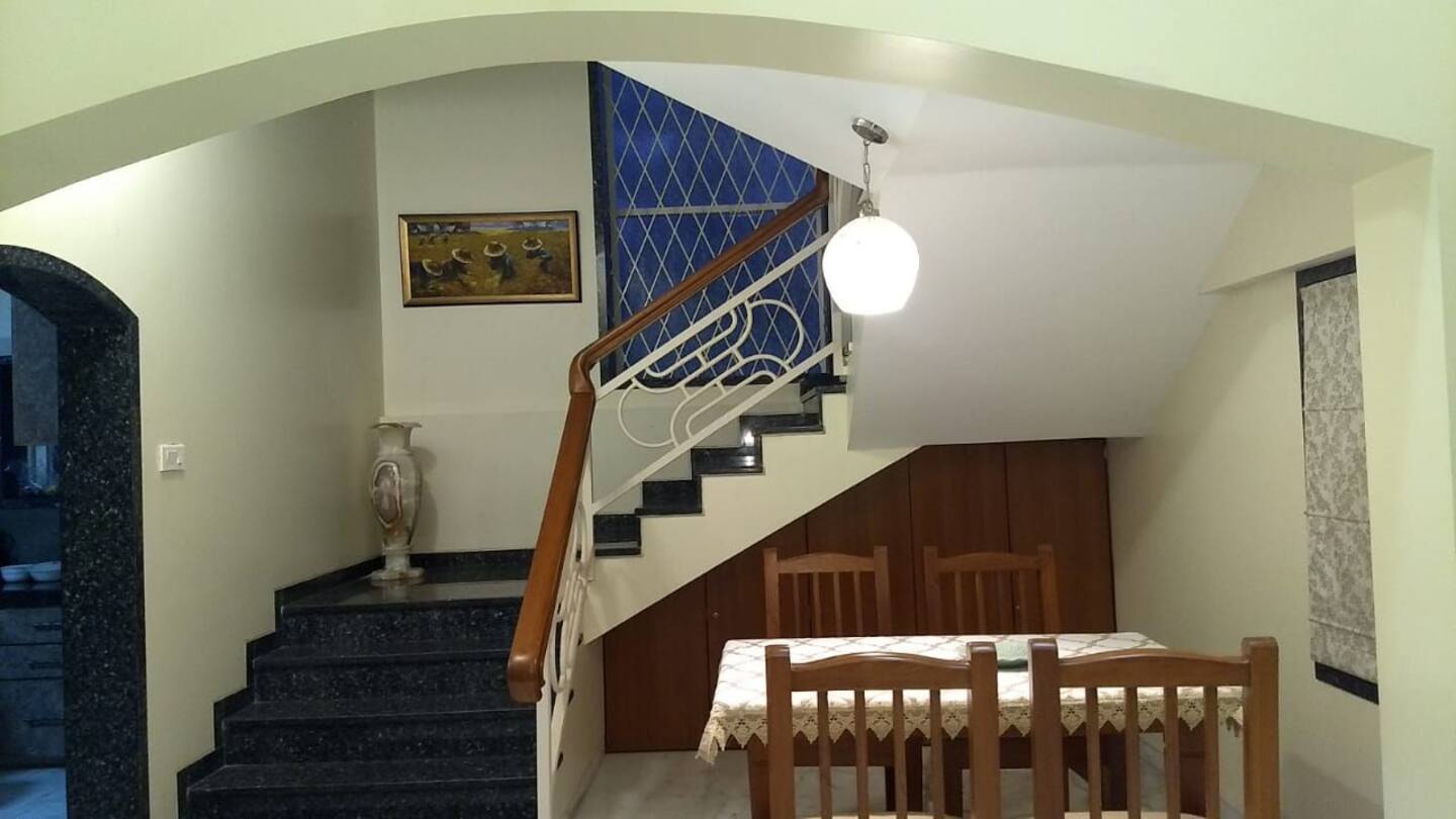 The property was well-maintained, including the beautiful garden. Every detail seemed thoughtfully designed, from the stunning mosaic glass painting on the front wall to the convenient balcony access from the upper bedroom.